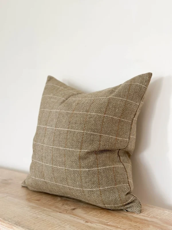 Elevate your home decor with our Amelia Olive Green Woven Cushion. Crafted from a Woven Tweed in a wool blend, it can be purchased as a Cover Only or filled with a luxurious Feather Cushion Pad. With a Zip Opening on the side the cover can easily be removed for cleaning or changing.